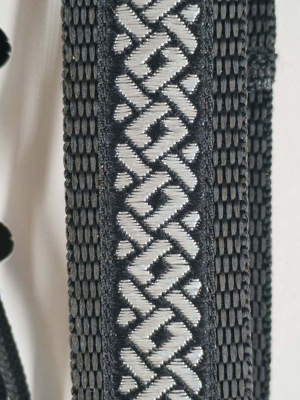 Lovely handmade straps with a decorative, woven ribbon trim supported by a strong webbing back.